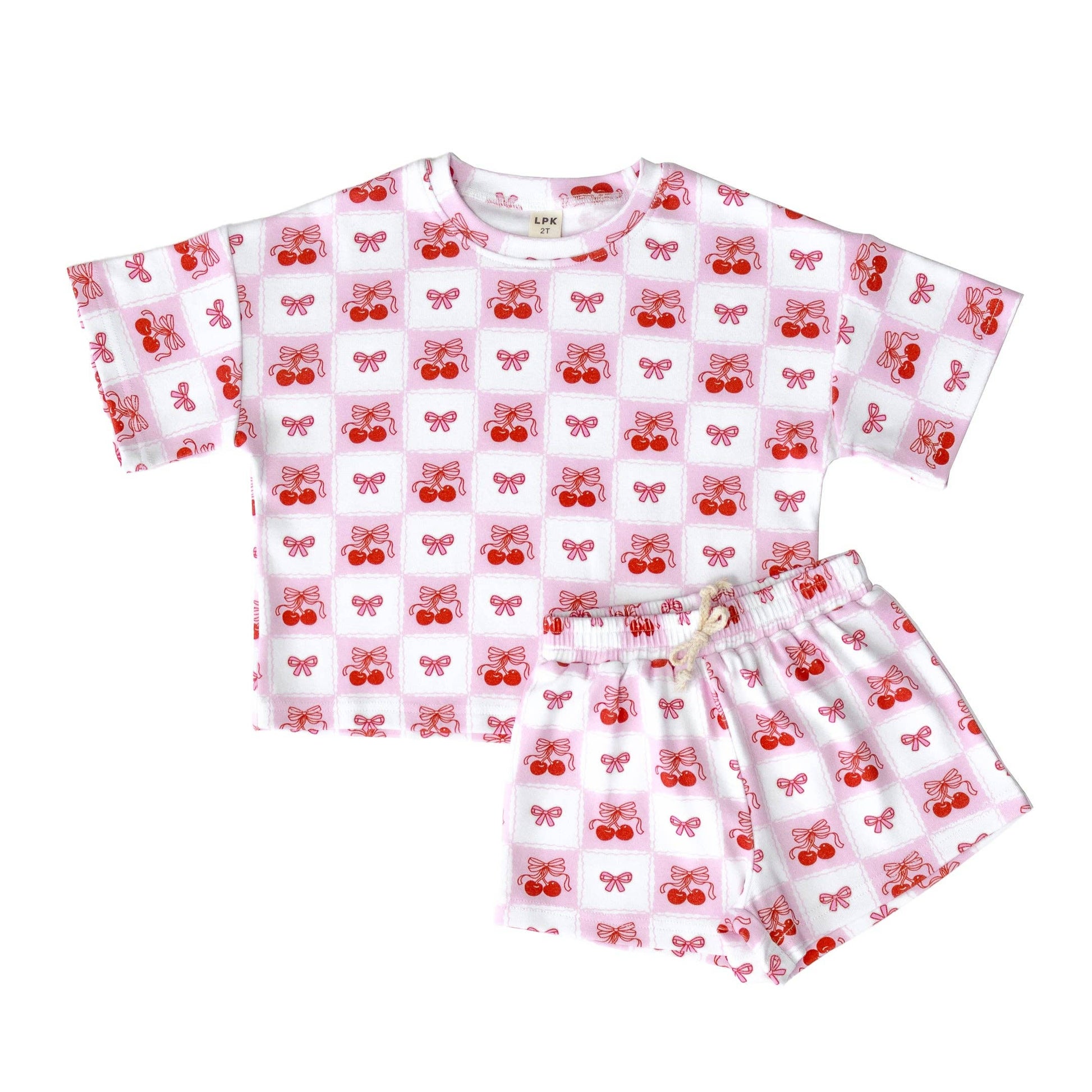 Nothing says summer quite like cherries and checkers! With a playful checkered print and tiny cherry details, this two-piece set brings classic picnic vibes to your little one’s everyday wardrobe. It’s soft, stretchy, and designed to keep them comfy no matter what the day brings — from park dates to snack breaks on the couch.